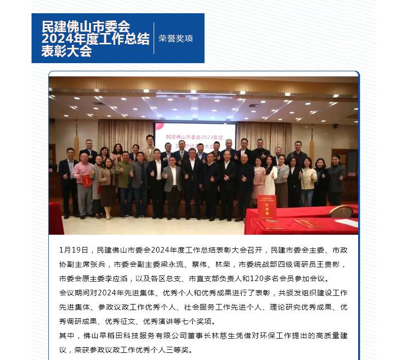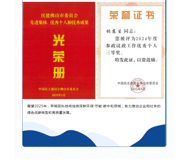 荣誉奖项|早稻田科技董事长林慈生荣获民建佛山市委会2024年度工作总结表彰大会表彰!