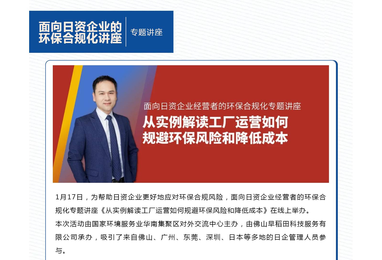 专题讲座|《从实例解读工厂运营如何规避环保风险和降低成本》环保合规化专题讲座